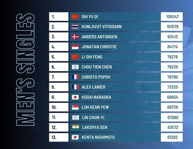 男单排名整体呈现“头部稳定,中后段大乱斗”的格局。世界前13位选手排名纹丝不动,国羽一哥石宇奇,稳稳守住世界第一的宝座,展现出极强的统治力。
